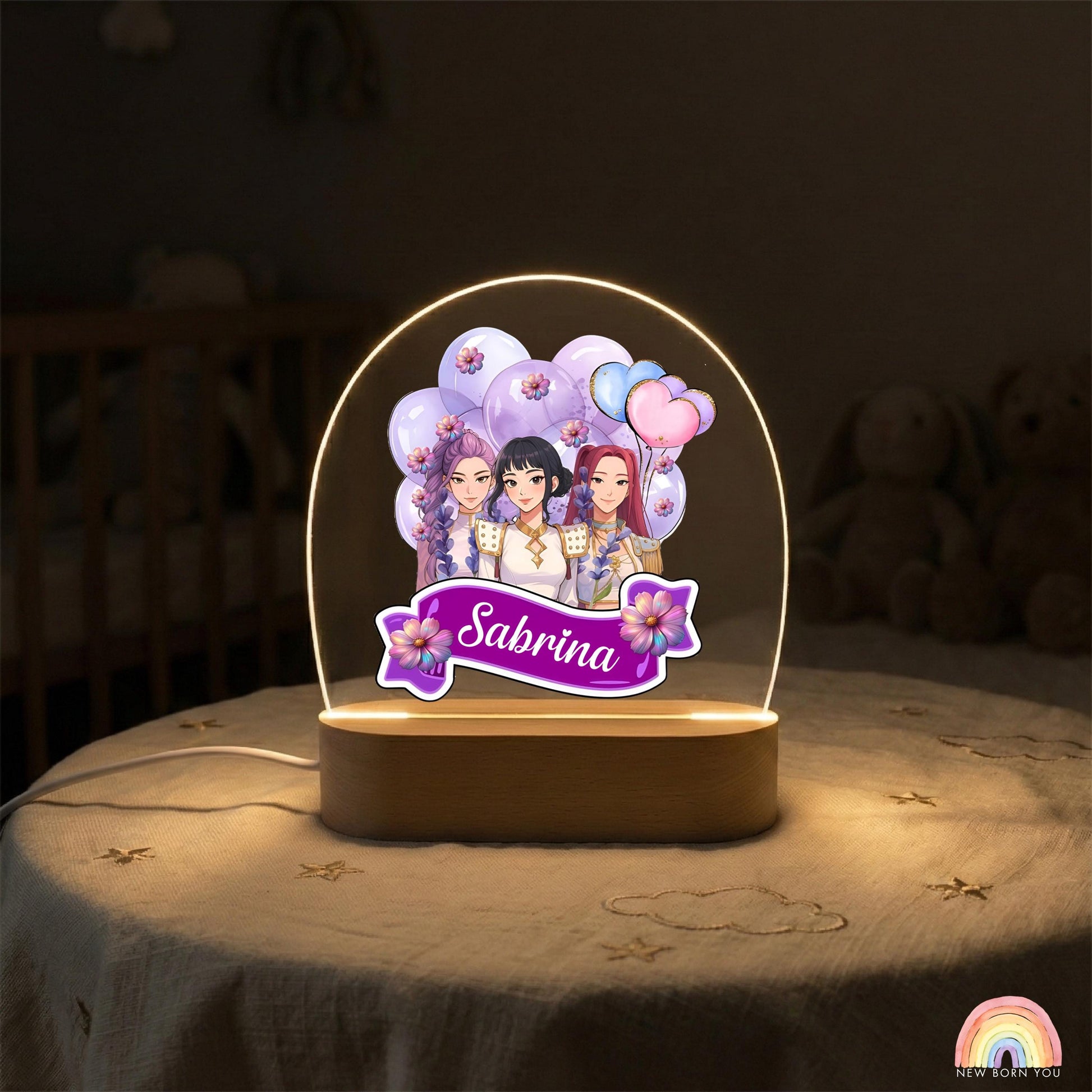 Personalised K-POP DEMON HUNTER Night Light, Led Lamp for Baby Girls, Custom Night Light with Name, Nursery Decor, Baptism Baby Shower Gift