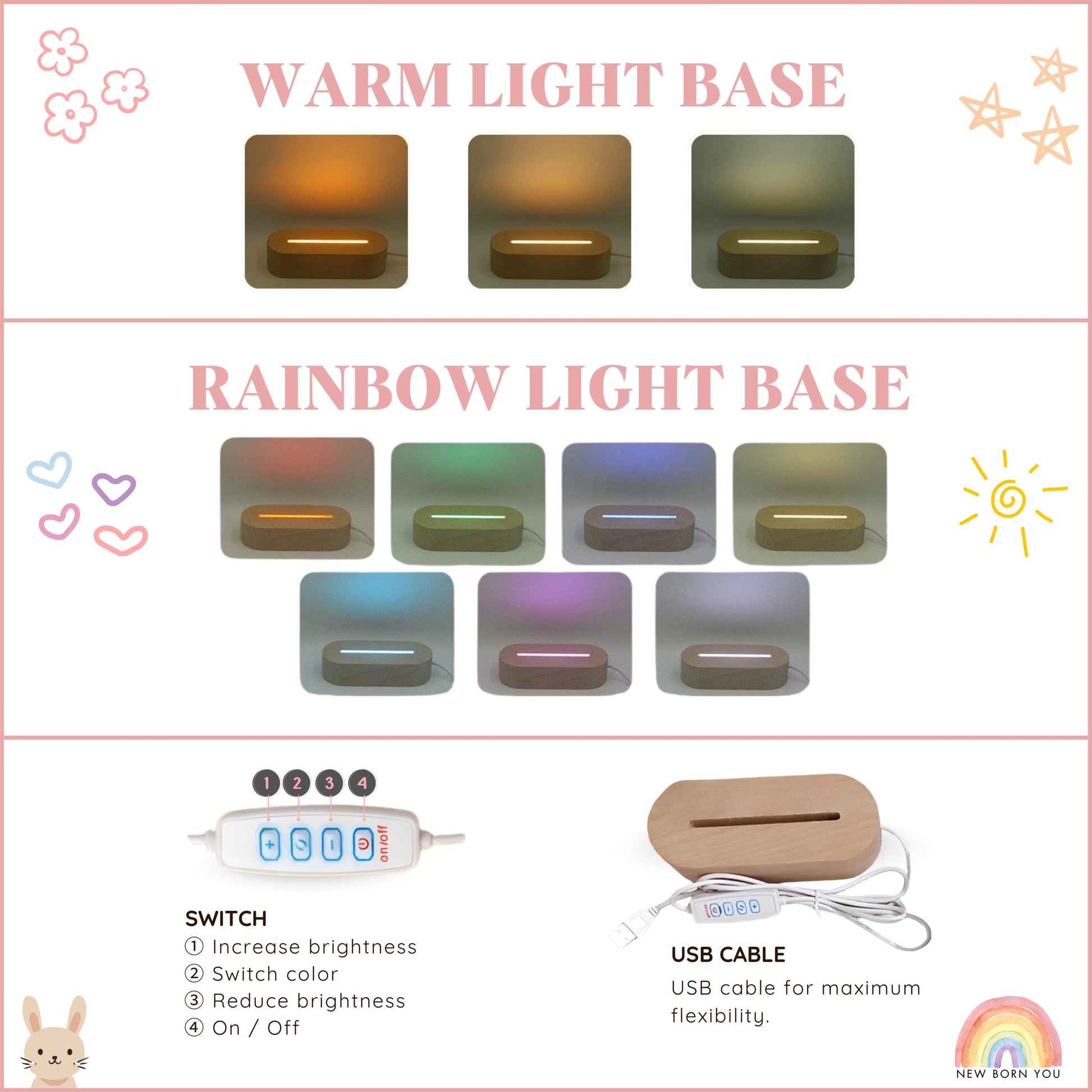 ✦ The package includes an Acrylic Board, an oval base with a Warm Light LED light, and a USB button switch cable.